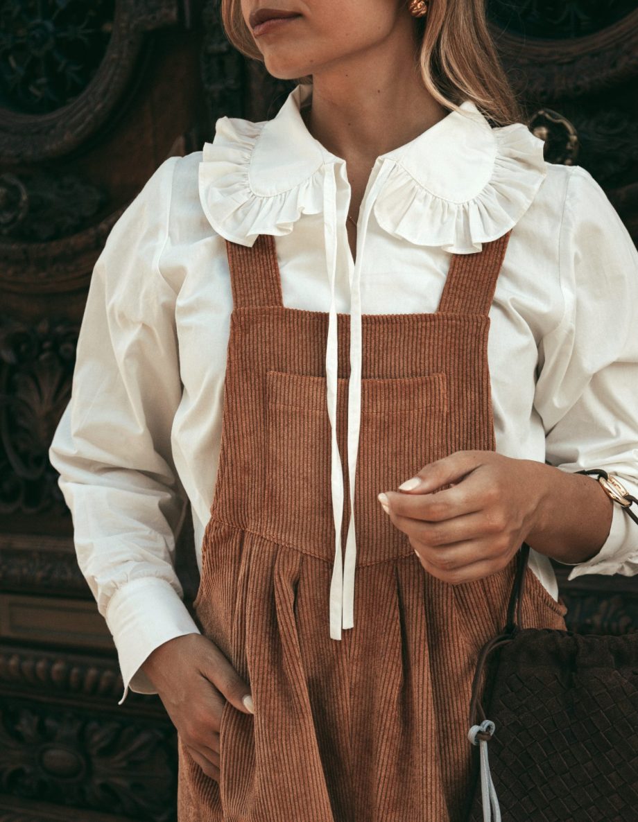 Confeccionado em bombazina macia, apresenta uma silhueta fluida e feminina, perfeita para o dia-a-dia ou para o trabalho.