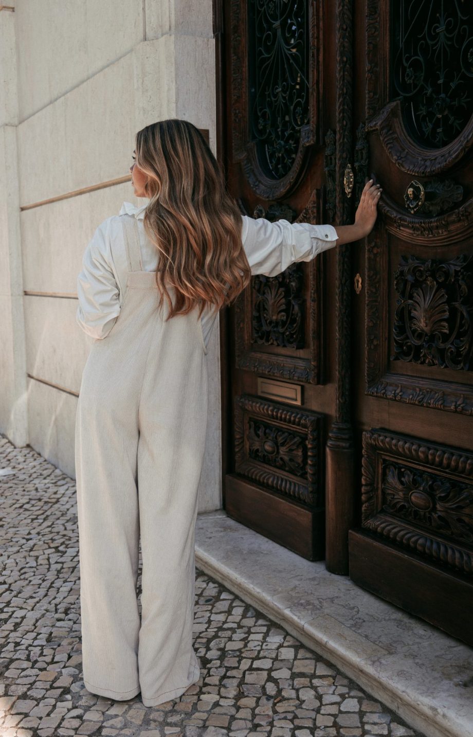 O macacão em bombazine é a definição de conforto com elegância.